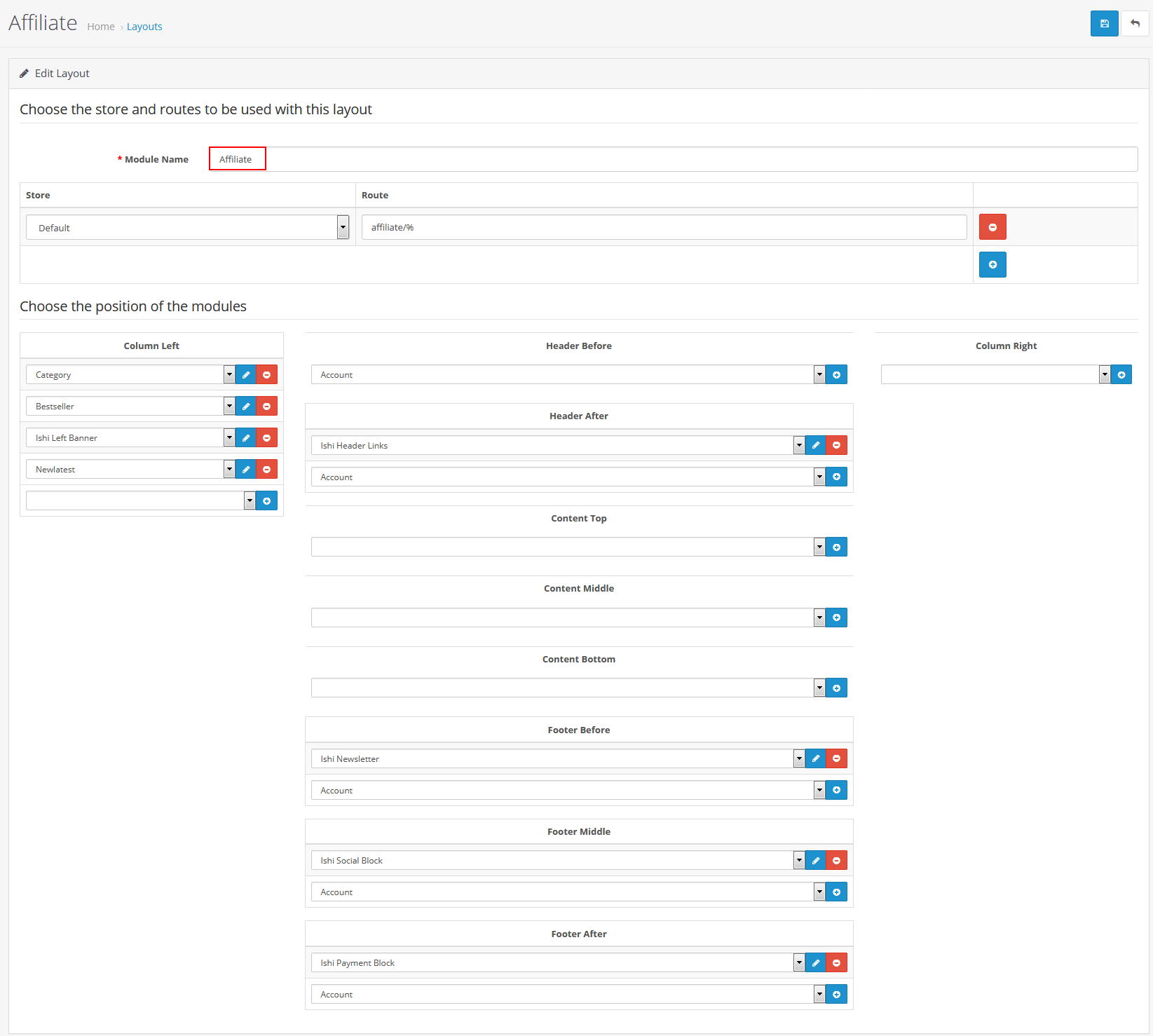- Search for Affiliate in the layout list.