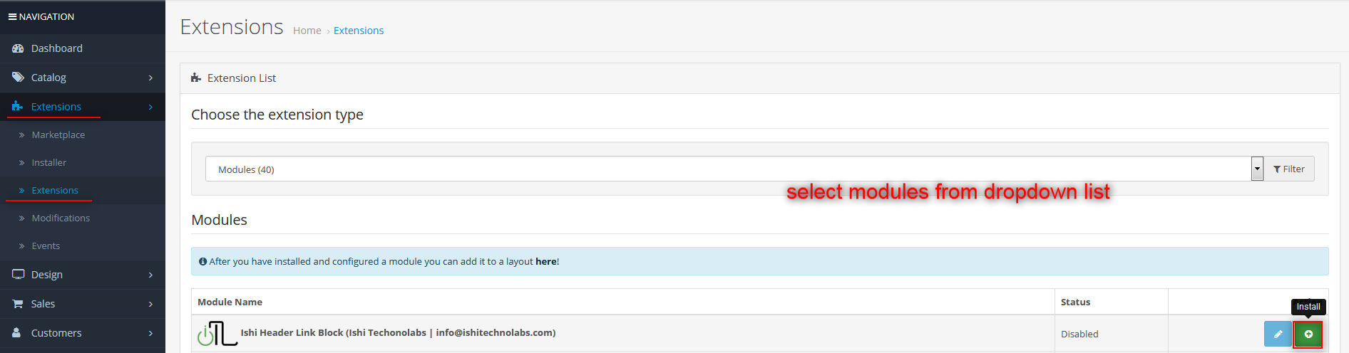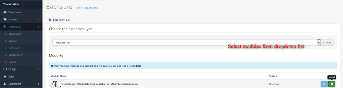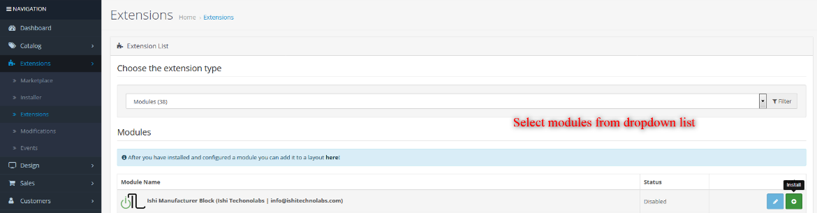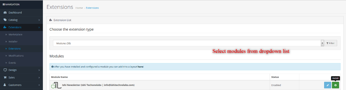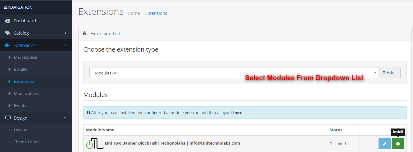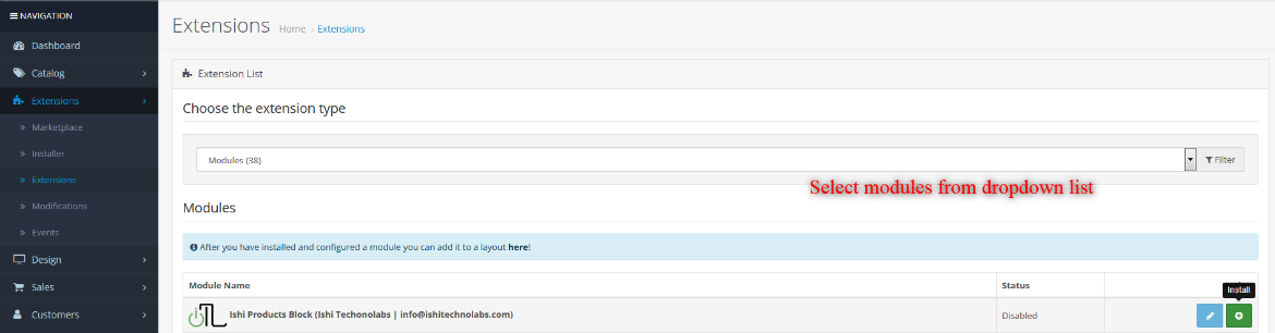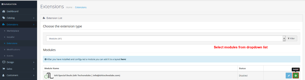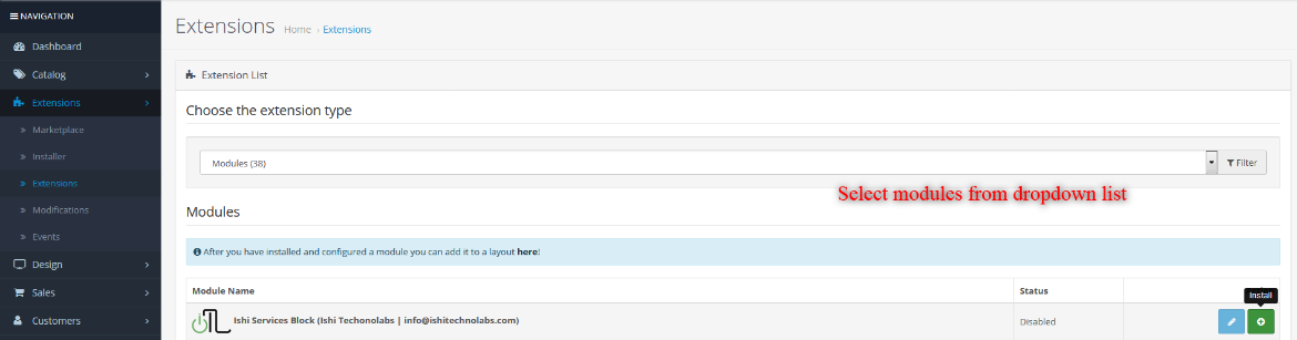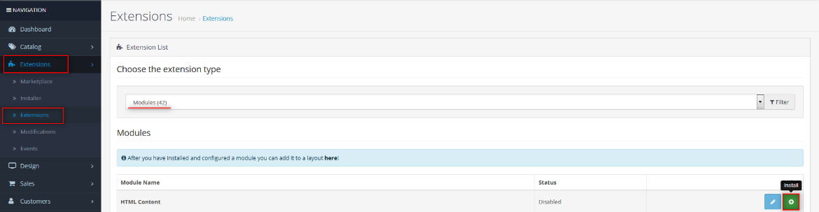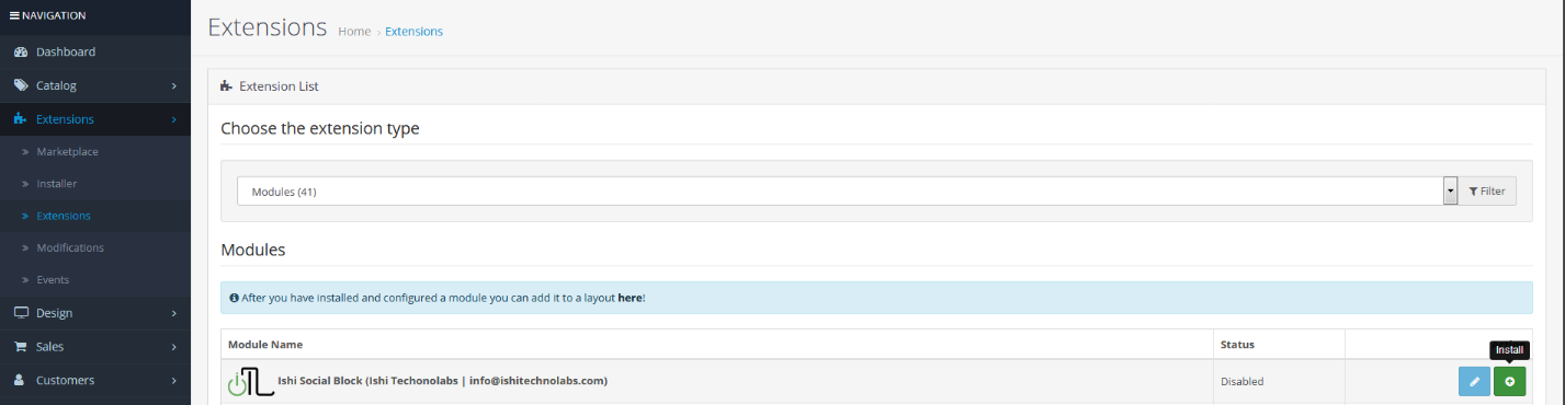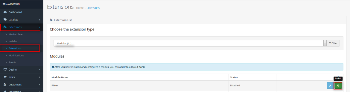 - It is recommended to disable the Opencart cache while you configure modules. You can enable it at the end of store configuration.