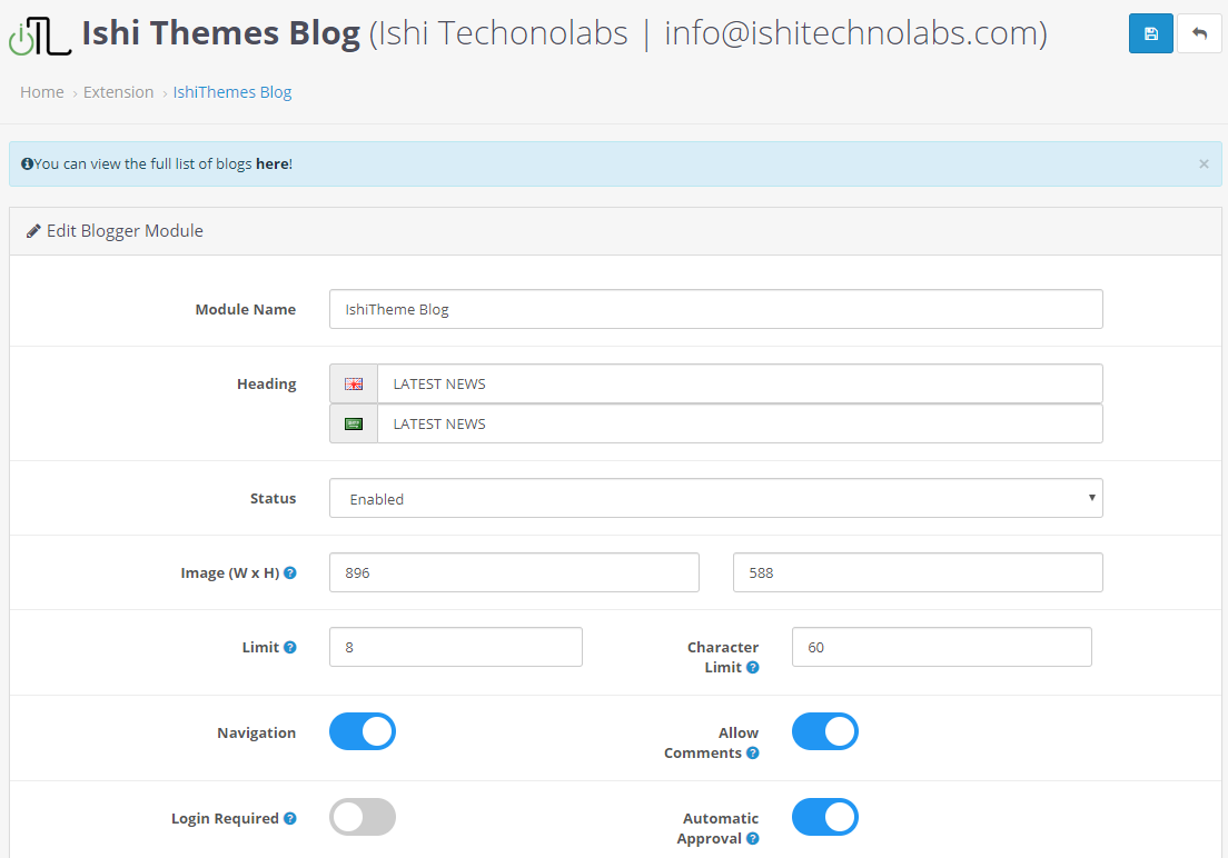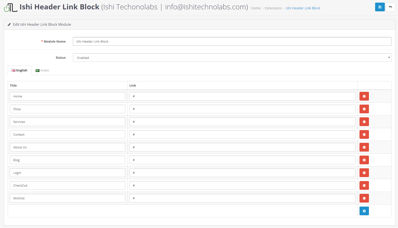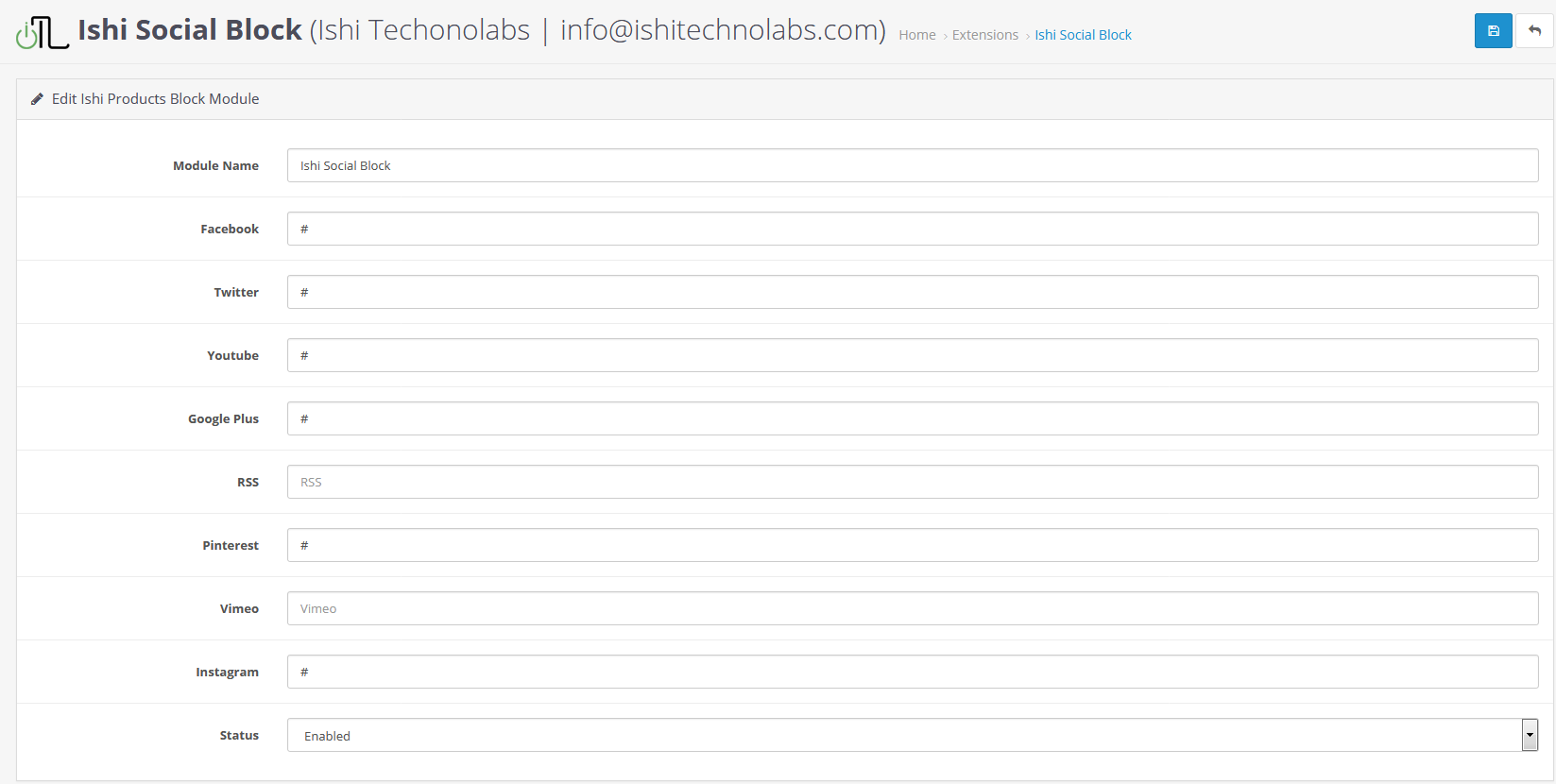 - Module Name : The name of the module will be used to identify the module. The default value is Ishi Social Block .