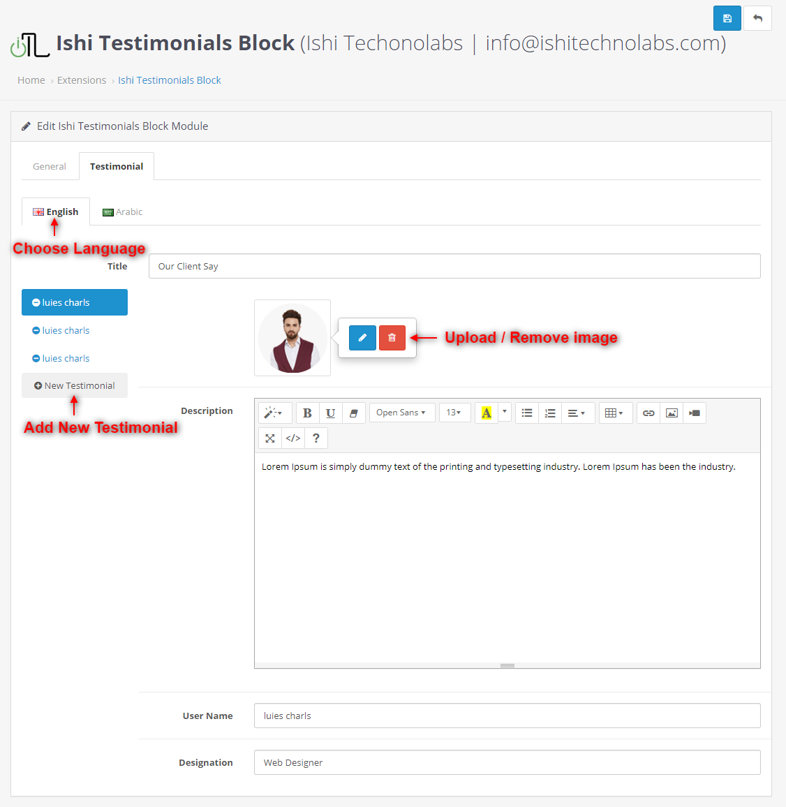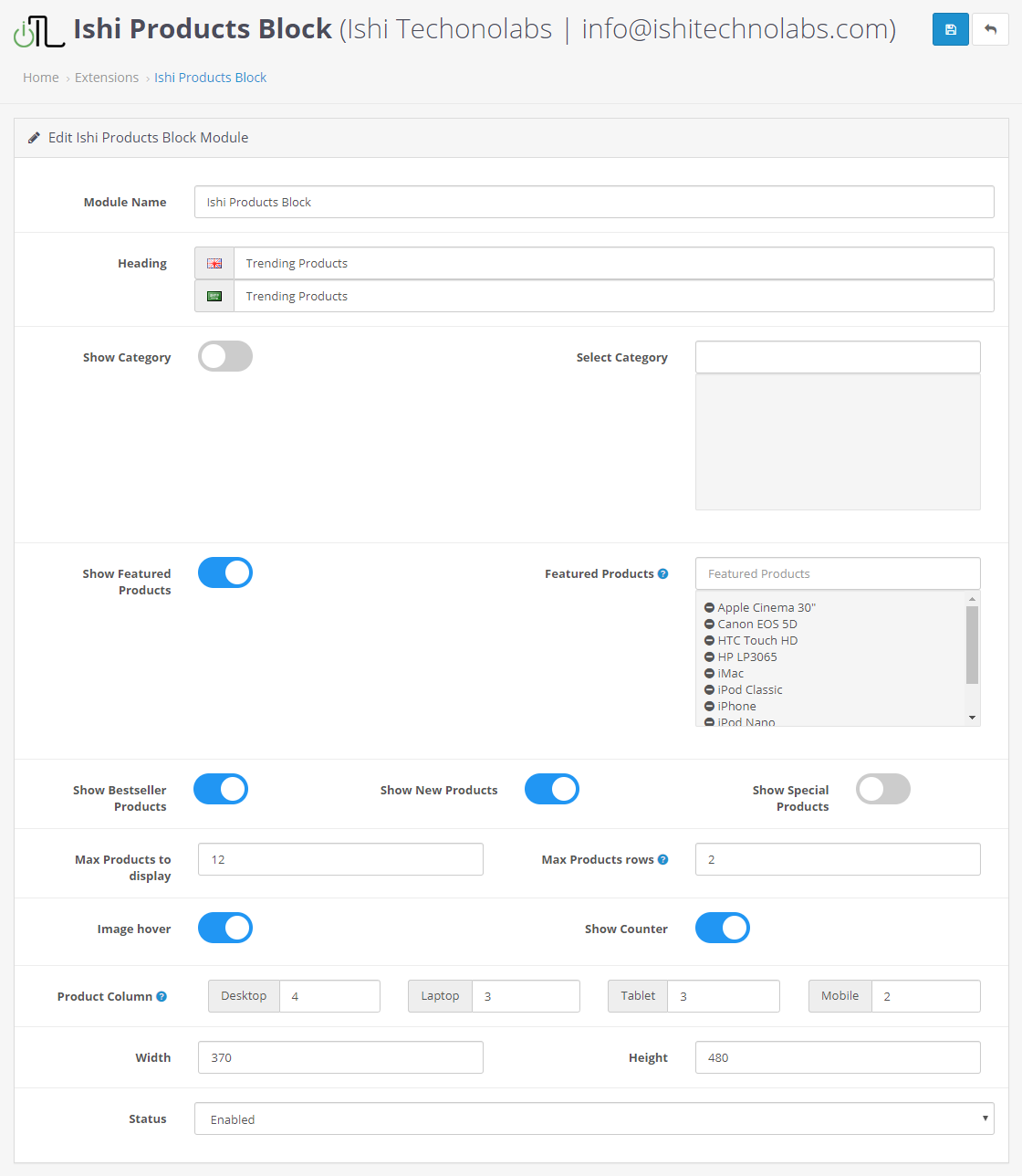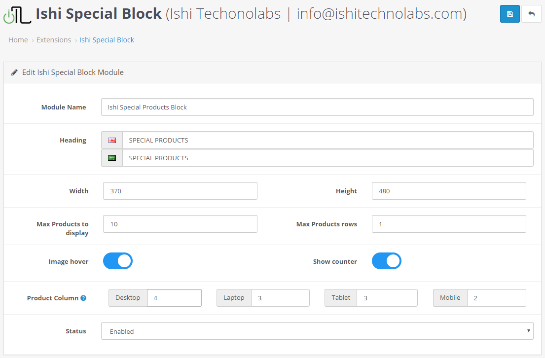 - Module Name : The name of the module will be used to identify the module. The default value is Ishi Social Block .