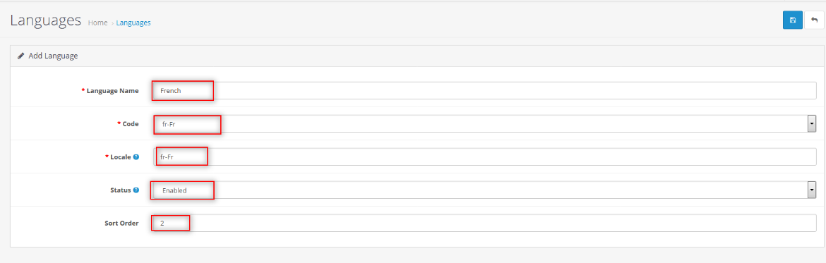 - Sort Order: The languages will be sorted and displayed according to the Sort Order.