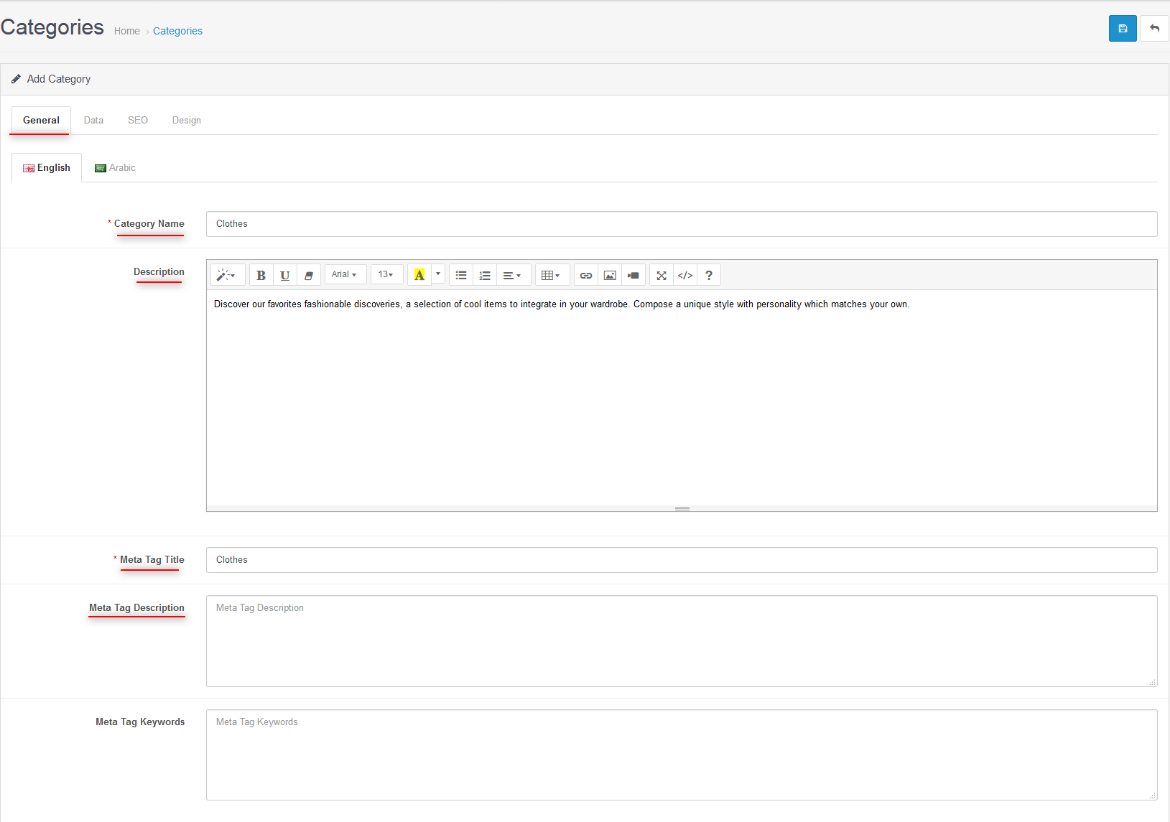 - Code: Configure code for language.(E.x = fr-Fr)