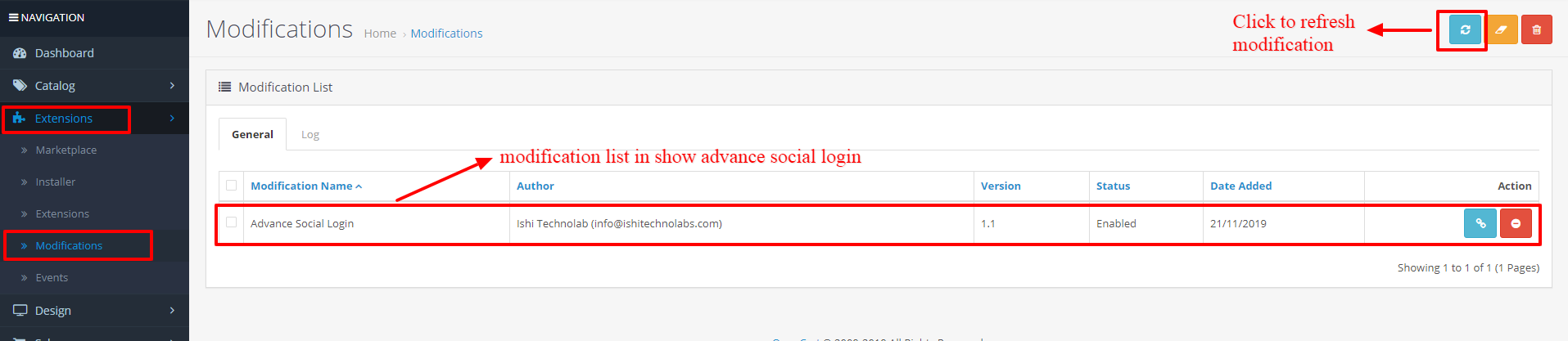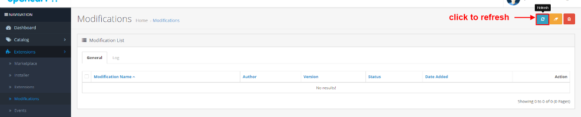 - Now, go to the Extensions > Modification and click on refresh field.