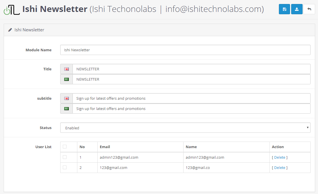 - Status: The language can be used only if it is Enabled