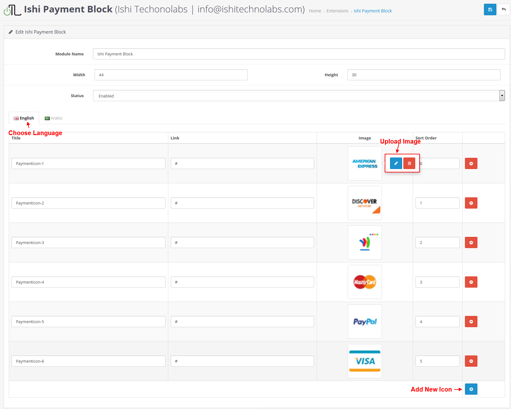This Responsive Ishi Payments Block displays payment images. You can add your own image with the user interface in the back office.