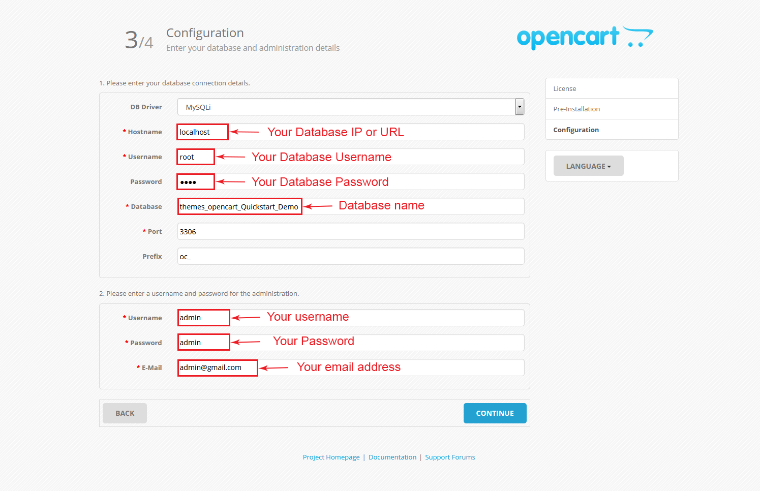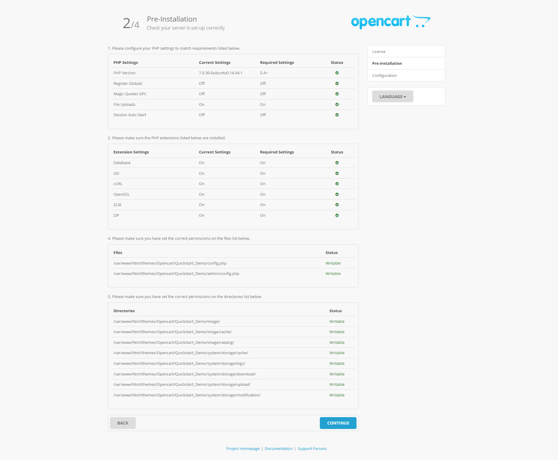 There are two ways to install an Opencart Theme. Using the quickstart, you will install opencart and the theme exactly as our Demo with sample data (You can follow this step when you are setting up a completely new store). Othere way is to install only the template without sample data (You can follow this step when you already have an opencart installation).