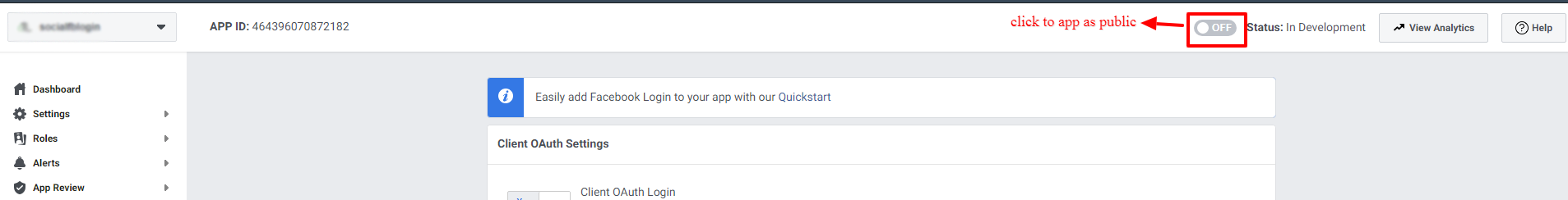 - Enable the OFF button to make the Facebook APP live.