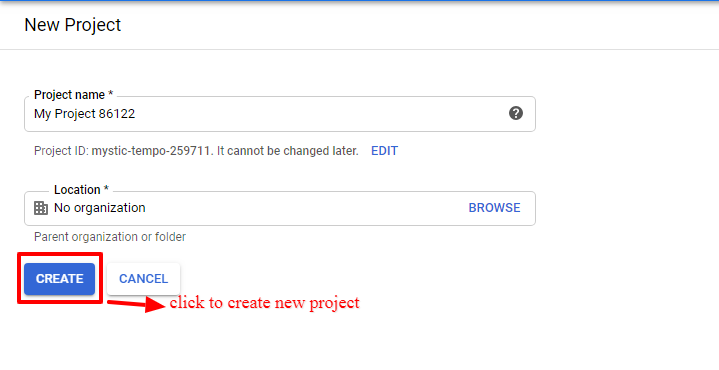 - Enter Project Name and Location as per your requirements.