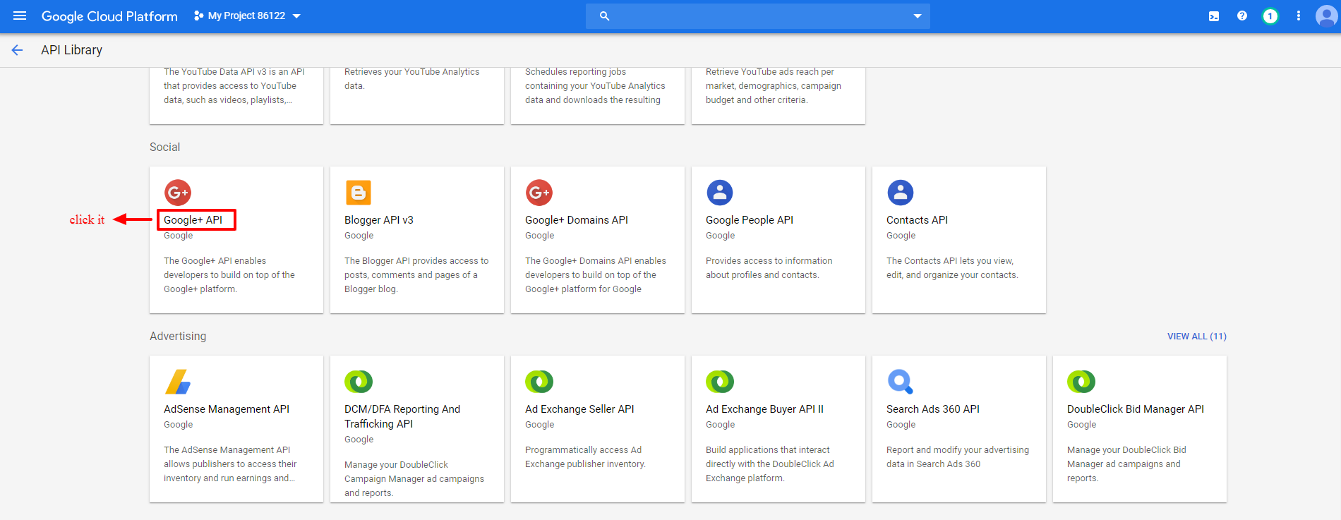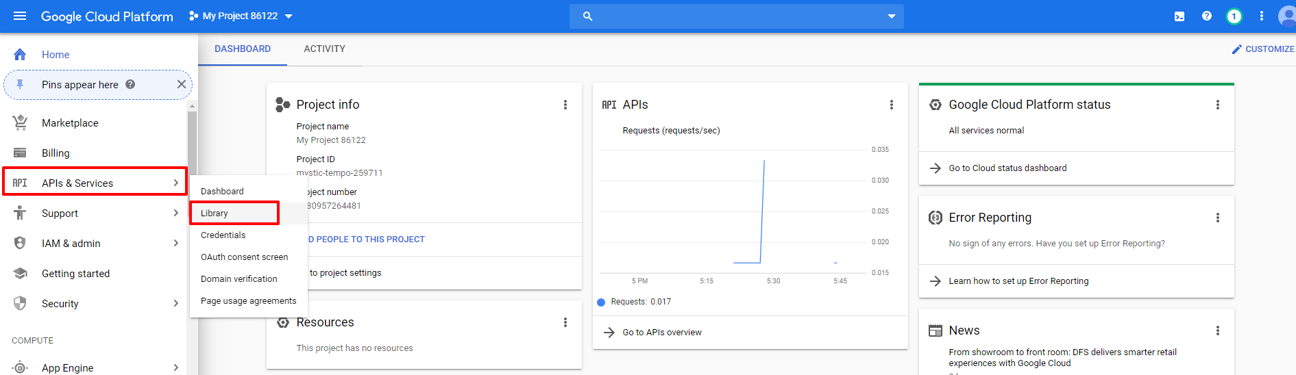 - Go to API & Services > Library