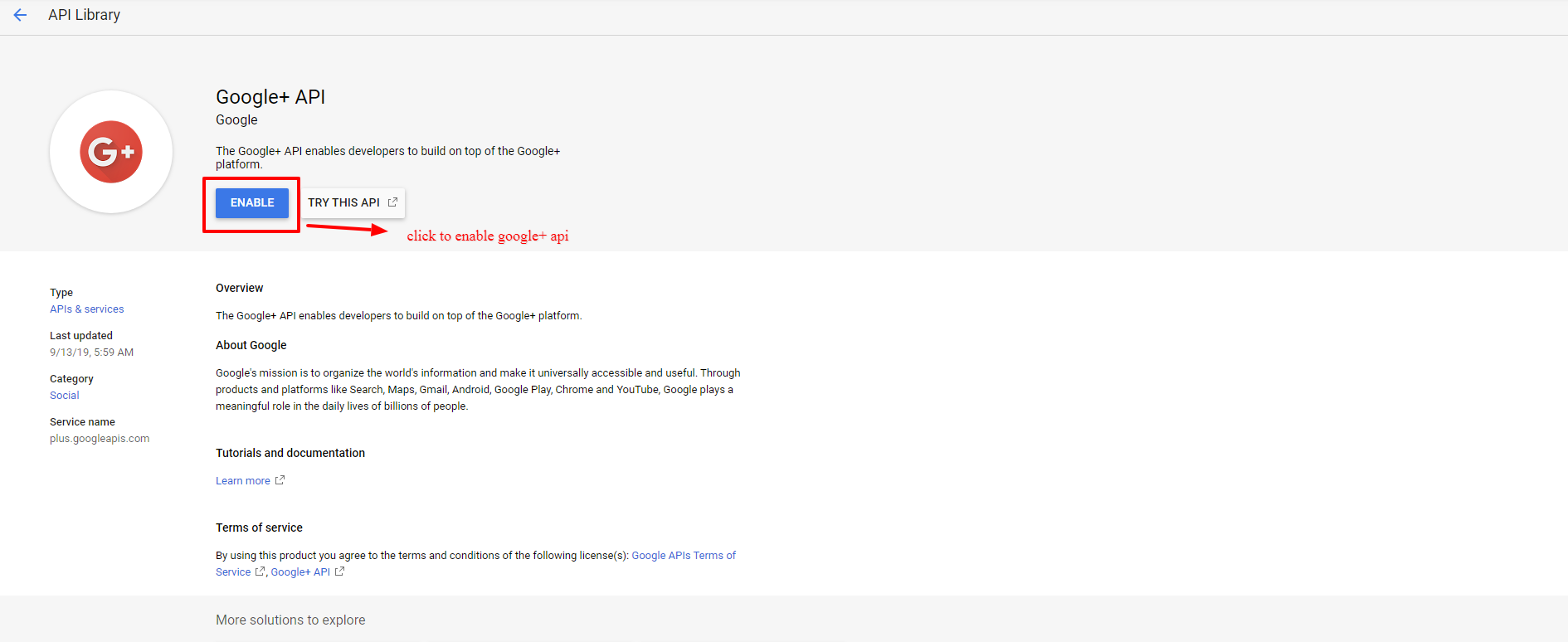 - Enable google+ library