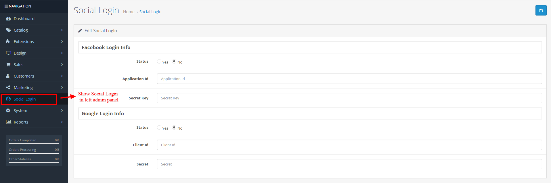 - After this step, you will be able to see the Social Login Tab in the left sidebar.