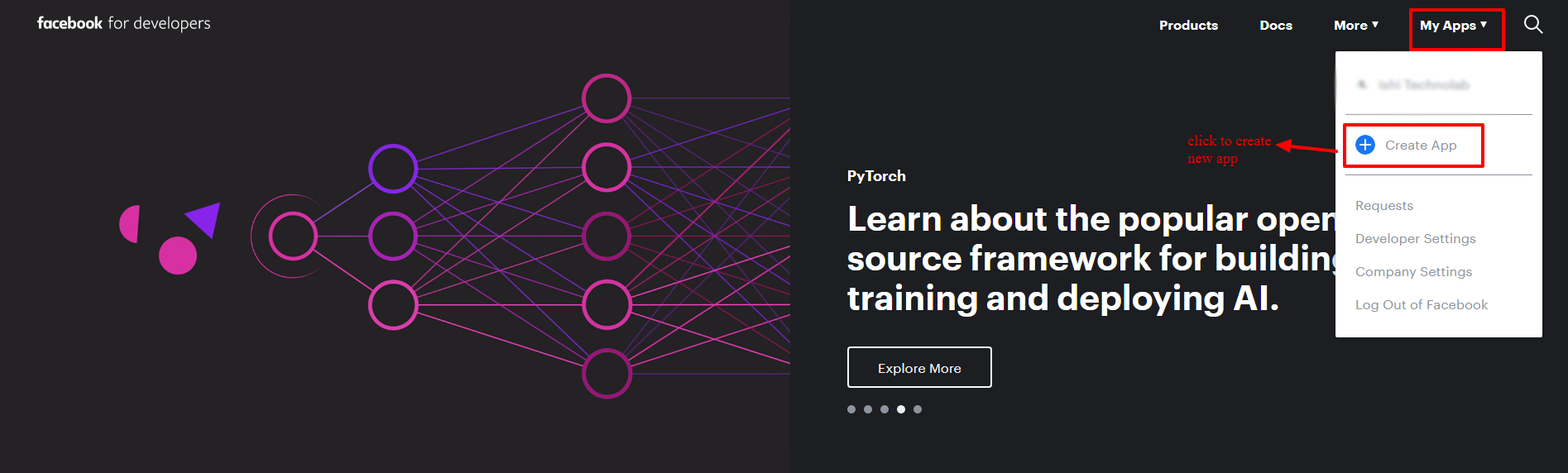 - Visit facebook developers page https://developers.facebook.com/