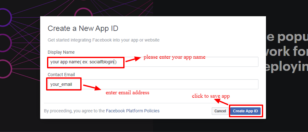 - Create new App in Facebook